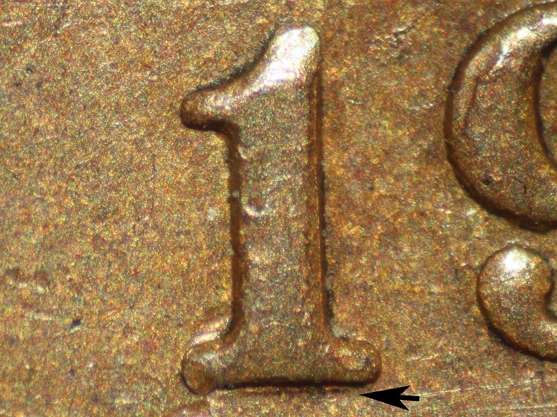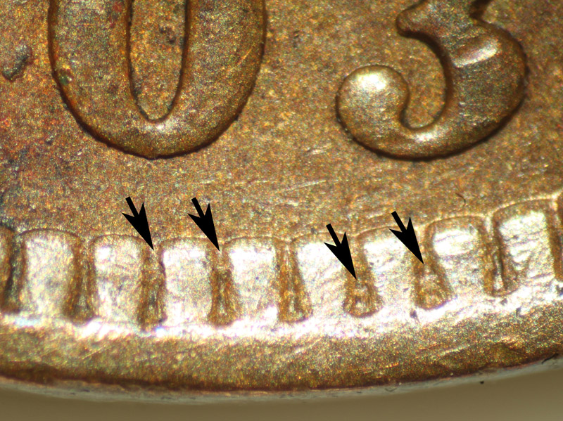 1 and the tops of two misplaced digits in the denticles below the 0 and