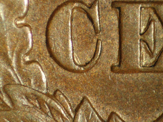 AL is rotated 6 degrees clockwise and has acquired a clash mark through (C)ENT from a clashing event with Obverse 36.
