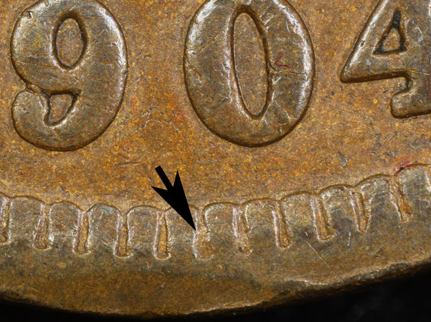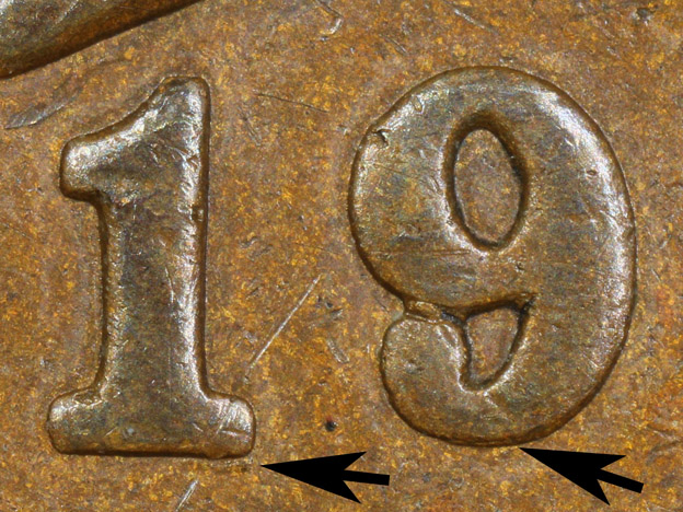 Obverse 37 date repunching and possible misplaced digit among the denticles.