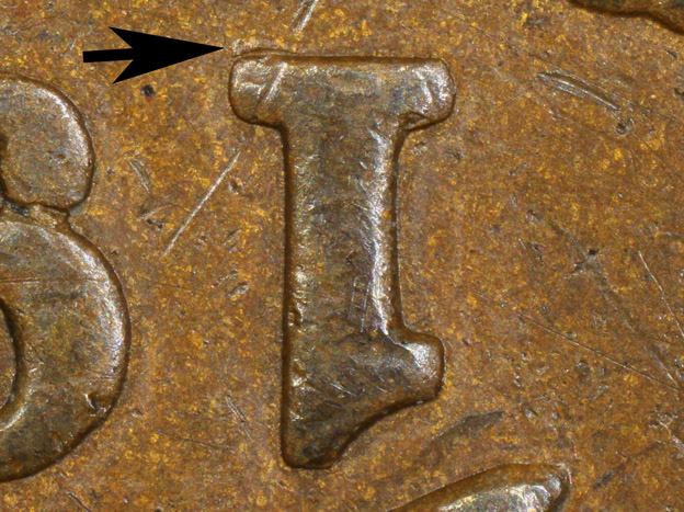 artifact among the denticles below the 0 of the date may possibly be a