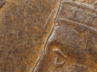 acquired clash marks from a clashing event with Obverse 40 and has cracked.