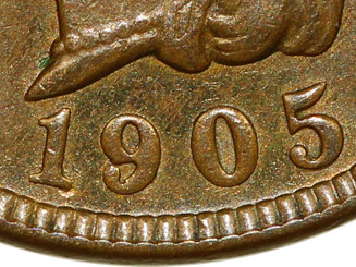 the ball of the 9, as well as the initial date impressions of the 0 and