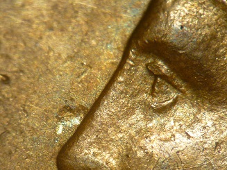light clash mark in front of the eye of Miss Liberty from a clashing