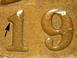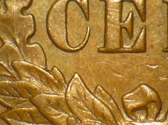 clash mark through the C of CENT from a clashing event with Obverse 45.