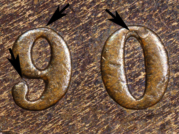 ![]() Repunched 9 and 0 (Click Image To Enlarge) |