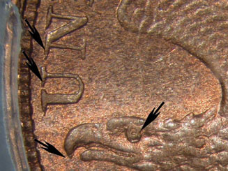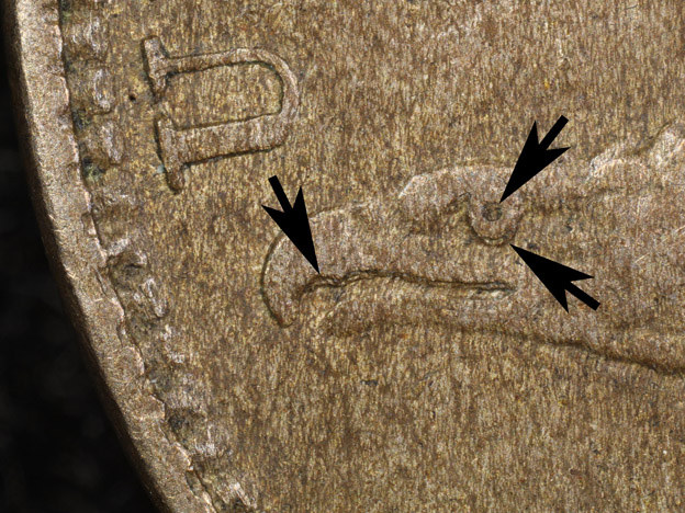 Obverse 3 features Class I Rotated Hub Doubling with clockwise rotation of the beak, eye, tail feathers and 'AM(ER)I(CA)'. |