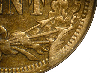 The retained cud of reverse AG seems to have been proceeded by a heavy die crack from 5:00 to 3:30.