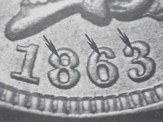 the 1863 variety 3 obverse, but that repunching is to the southwest.