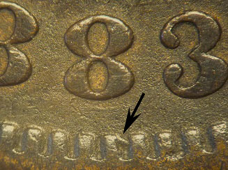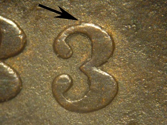 Obverse 29 is identified by a misplaced 8 or 3 in the denticles below the right half of the second 8, with date placemnet at RH
